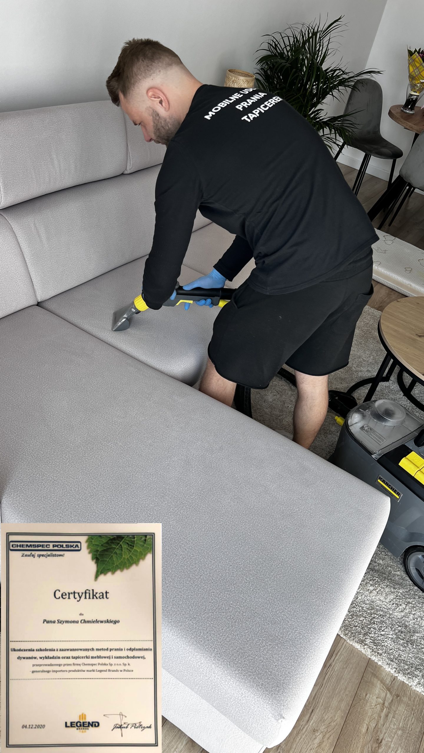Aplikacja środka czyszczącego – następnie na powierzchnię dywanu aplikowany jest specjalny środek czyszczący, który rozpuszcza i usuwa zanieczyszczenia z włókien dywanu.